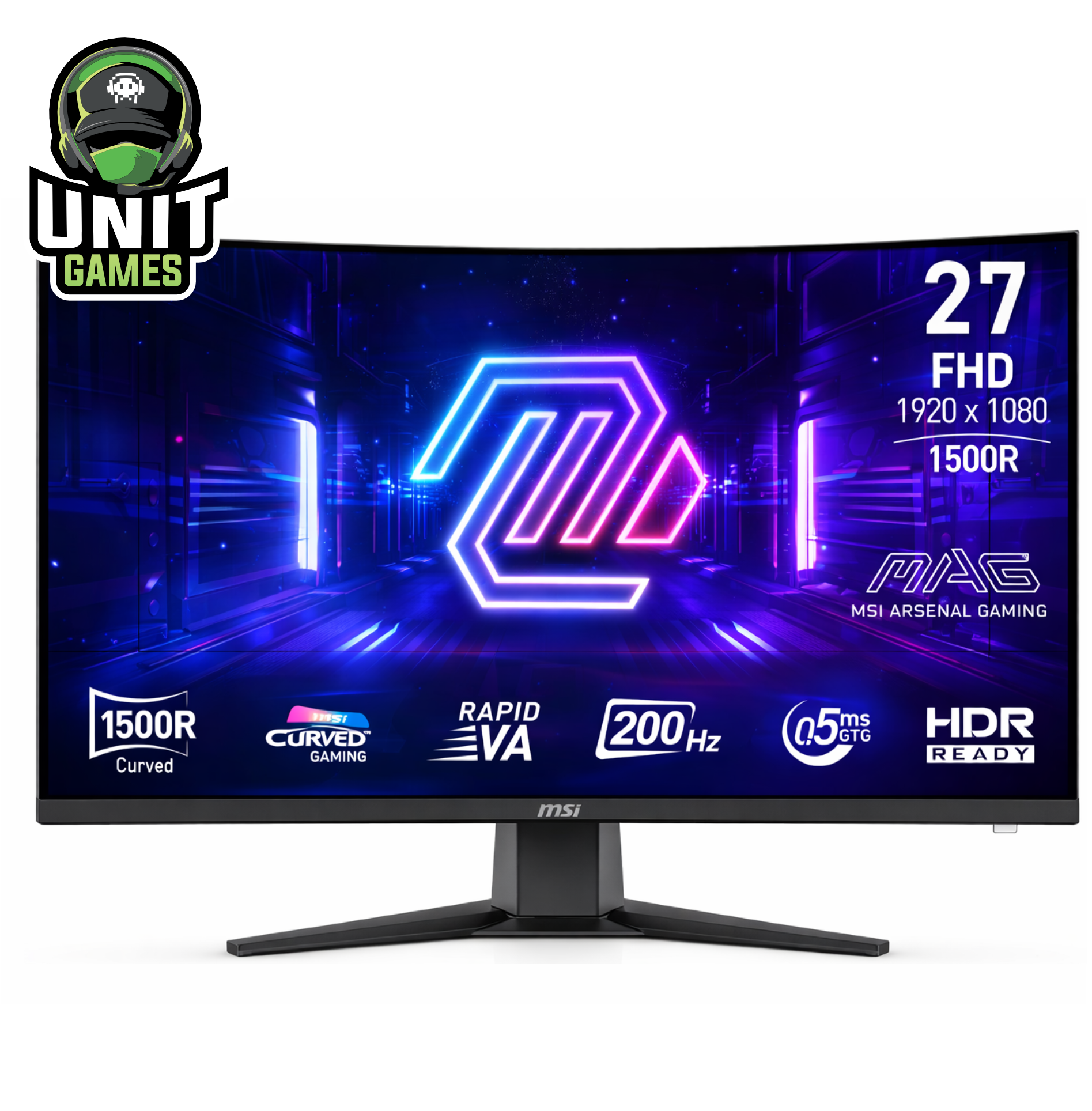 El Monitor Curvo MSI MAG 276CF E20 27» 200Hz está diseñado para ofrecer máxima inmersión, fluidez y rendimiento en gaming. Su pantalla curva de 27 pulgadas Full HD brinda una experiencia envolvente ideal para juegos, películas y uso diario.