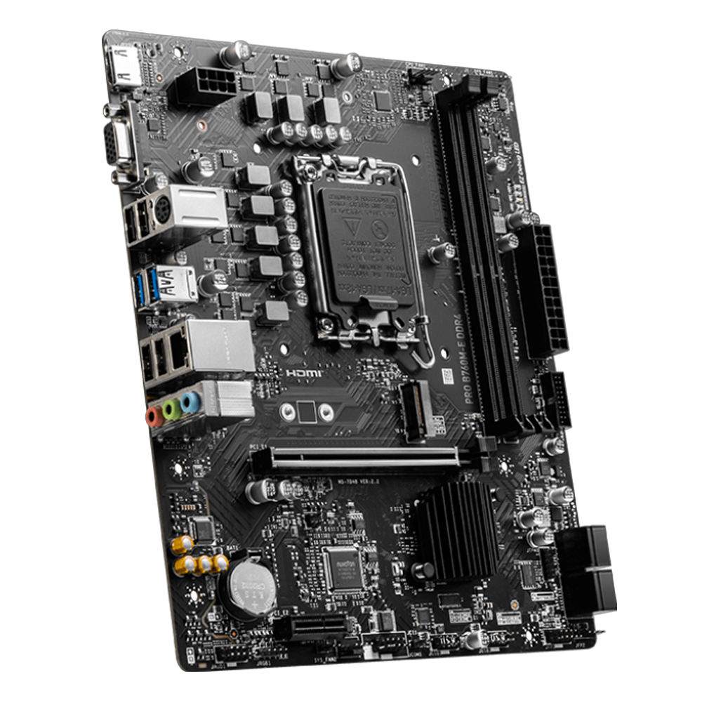 La MSI B760M-E DDR4 es una placa base micro-ATX diseñada para procesadores Intel de 12.ª y 13.ª generación, enfocada en ofrecer rendimiento equilibrado, buena conectividad y compatibilidad con memoria DDR4. Ideal para PCs de oficina, gaming o productividad con soporte para componentes modernos y características robustas.