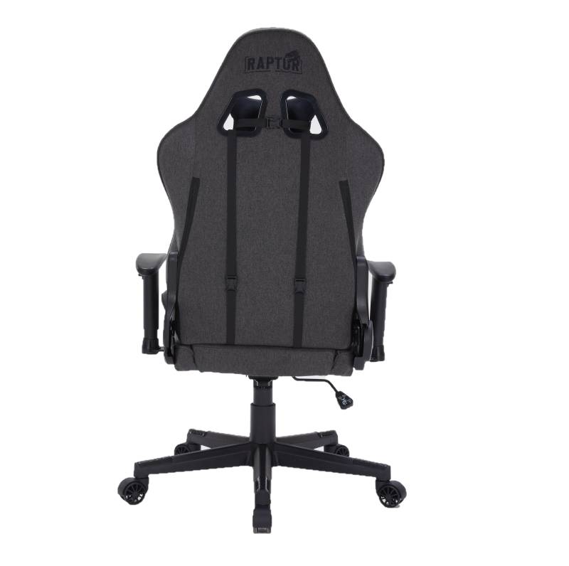 La RAPTOR Throne R1 combina diseño ergonómico con materiales resistentes, ideal para quienes buscan comodidad durante largas jornadas de uso. Su tapizado en tela permite mejor respiración que el cuero sintético, y su respaldo reclinable la hace perfecta tanto para trabajar como para jugar.