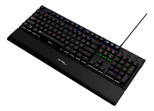 El NETMAK Legend es un teclado mecánico gamer robusto y confiable, equipado con switches Blue, que ofrecen un feedback táctil y sonoro ideal para quienes disfrutan de una respuesta precisa en juegos y escritura. Su iluminación RGB con múltiples efectos agrega un estilo dinámico al setup.